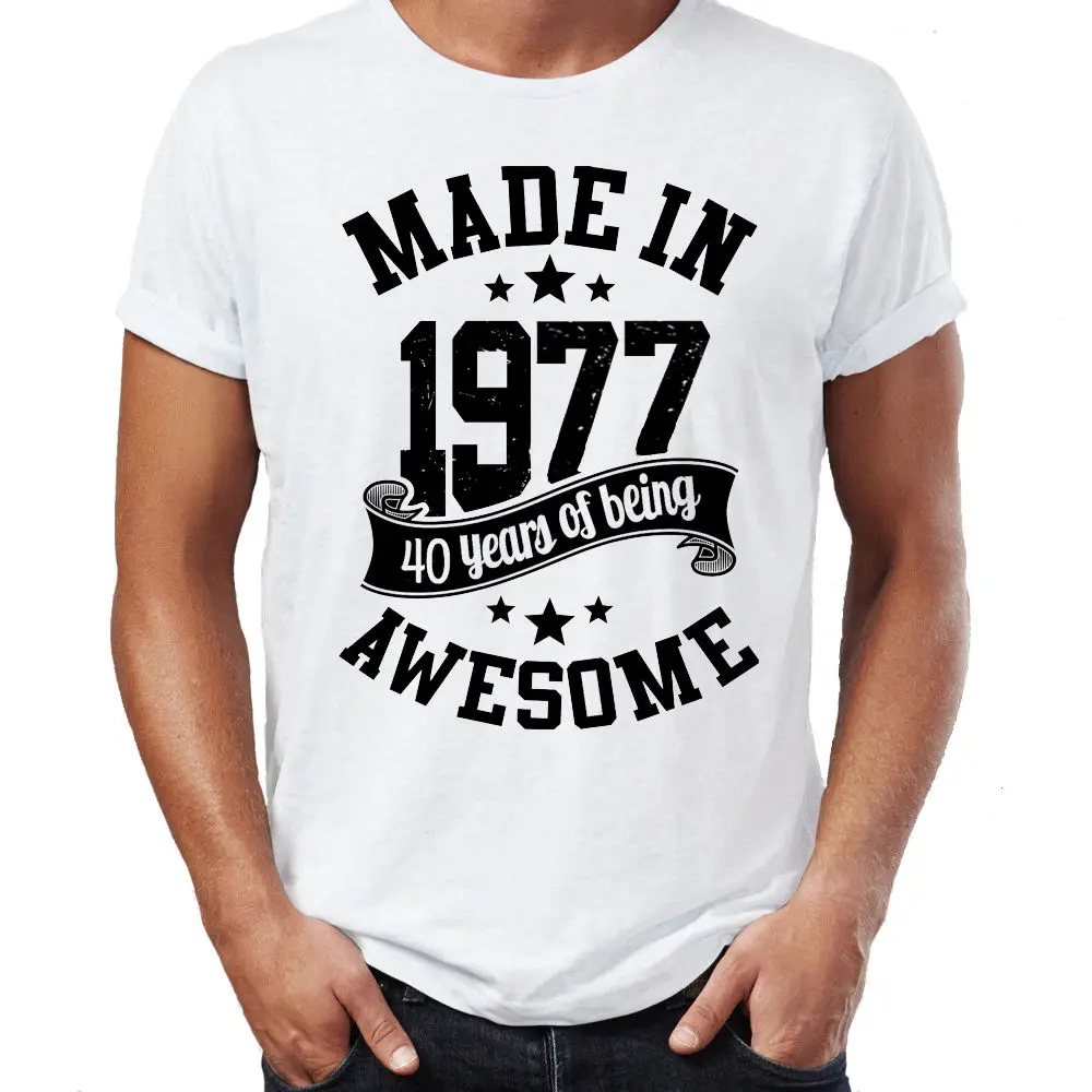 homme brand clothing for men T shirt Made in 1977 Born 40th Year Birthday Age Present Vintage Desig