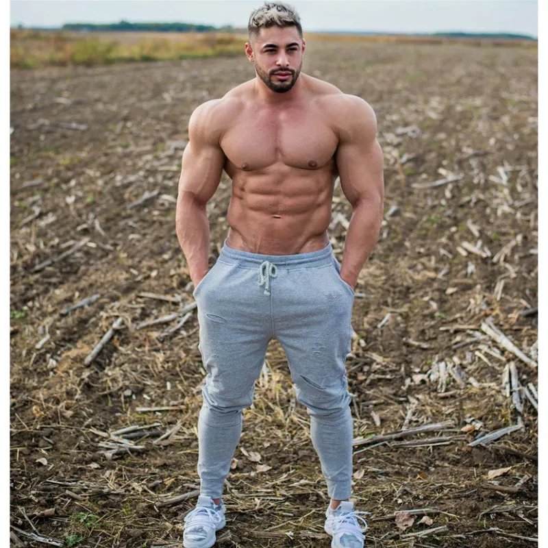 Best Quality Fitness Pants Men Elastic Breathable Sweat Pants Grey Drawstring Outwear Clothing Male Pants Trouse